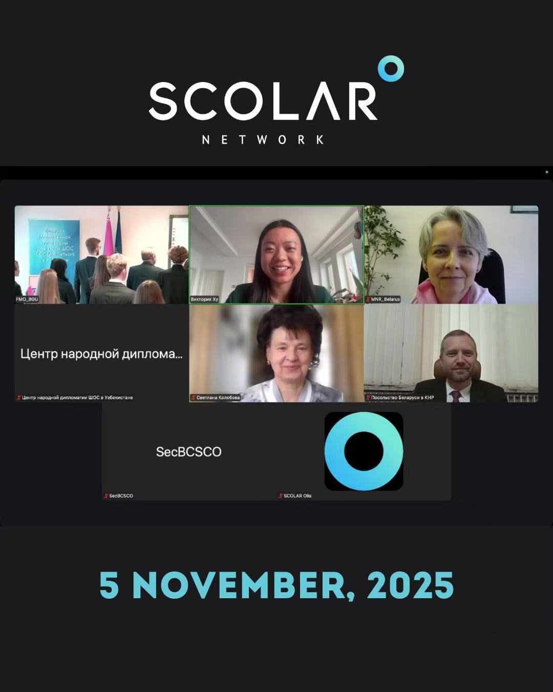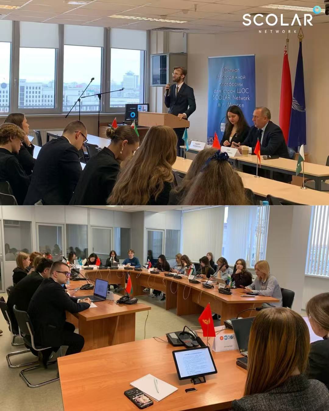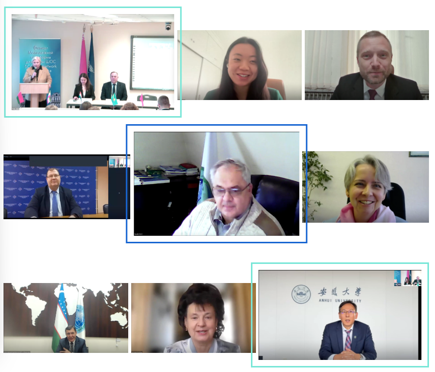 The event was opened by Dean of the FIR BSU, Elena Anatolyevna Dostanko, and Co-founder and President of the SCOLAR Network, Victoria Khu. Welcoming remarks were delivered by Executive Secretary of the SCO Business Council, Sergey Vadimovich Kanavskiy; Acting Permanent Representative of the Republic of Belarus to the SCO Secretariat, Evgeny Olegovich Ryabtsev; Head of the International Cooperation Department of the Ministry of Natural Resources and Environmental Protection, Larisa Sergeevna Lukina; Director of Center for People’s Diplomacy of SCO in Uzbekistan, Kabuljon Kasimovich Sabirov, and Dean of the Higher School of International Relations of the N.A. Dobrolyubov Nizhny Novgorod State Linguistic University, Svetlana Anatolyevna Kolobova. Greetings to the participants were also sent by the Head of the China and Asia-Pacific Cooperation Department of the Main Directorate for Asia, Africa, Latin America of the Ministry of Foreign Affairs of the Republic of Belarus, Vadim Leonidovich Senyuta, and Director of the Department of International Cooperation and Exchange of Anhui University (Hefei, People’s Republic of China), Hu Xuewen.